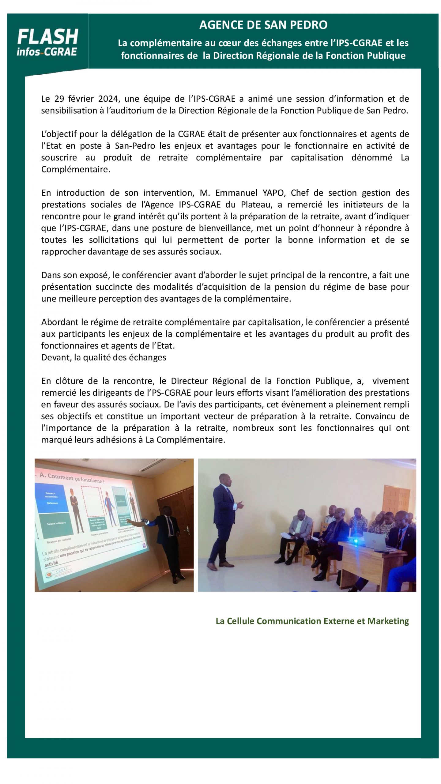 Adhésions des fonctionnaires de san pedro à La Complémentaire
