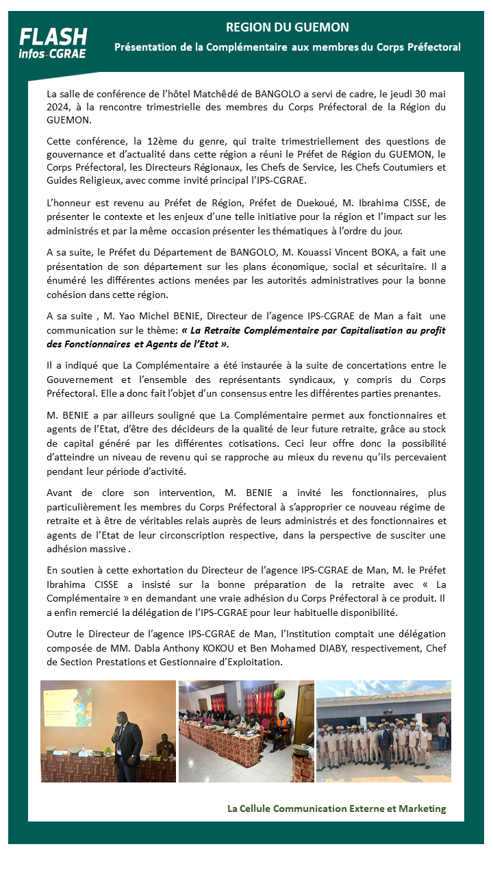 Présentation de La Complementaire aux Corps Prefectoral de la région du Guemon