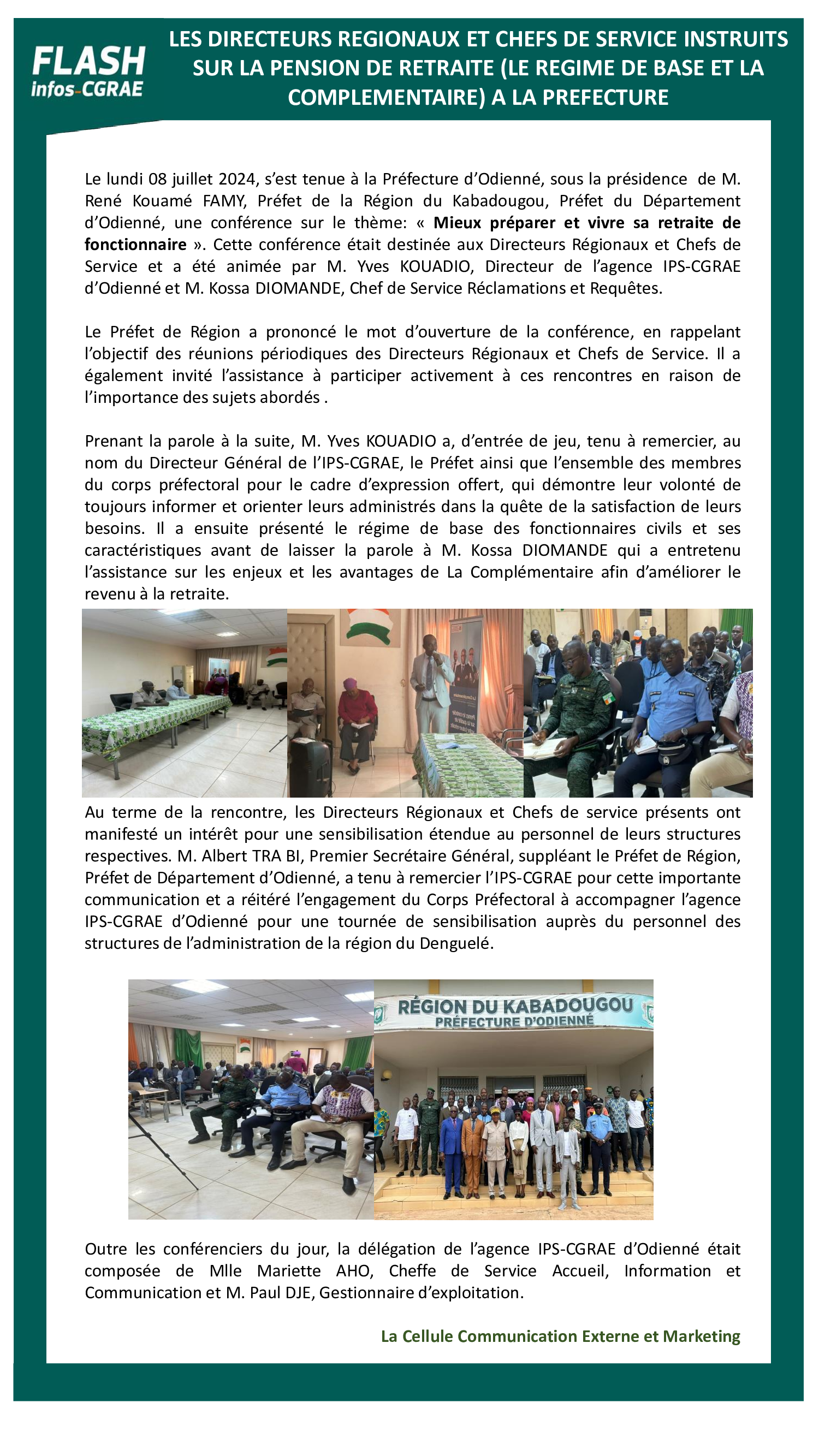 Les Directeurs Régionaux et Chefs de service instruits sur la pension de retraite