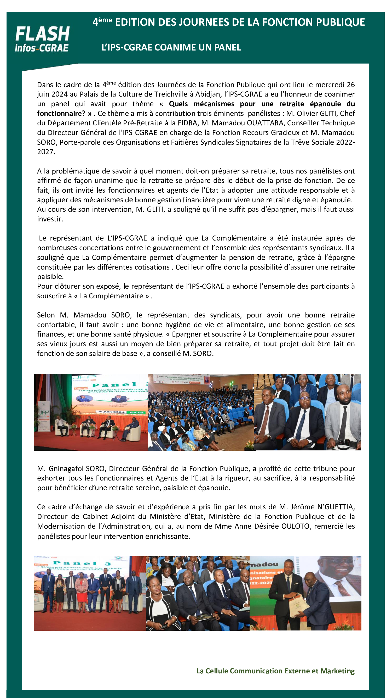 4ème édition des journées de la fonction publique L’IPS-CGRAE coanime un panel
