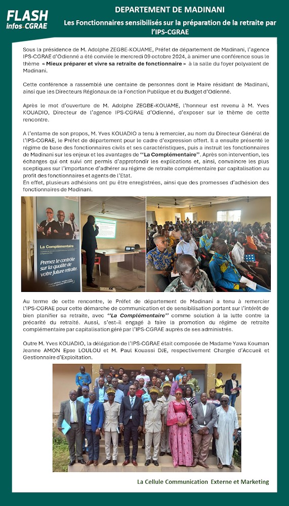 HomeNewsActualitésDépartement de Madinani – Les fonctionnaires sensibilisés sur la préparation de la retraite par l’IPS-CGRAE