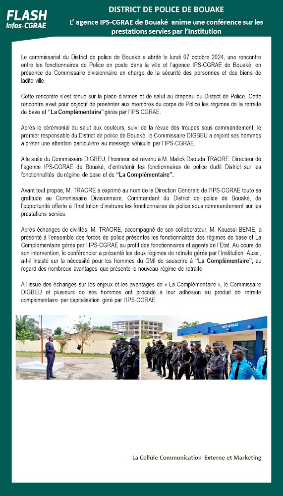 HomeNewsActualitésDistrict de Police de Bouaké – l’IPS-CGRAE anime une conférence sur les prestations servies par l’institution