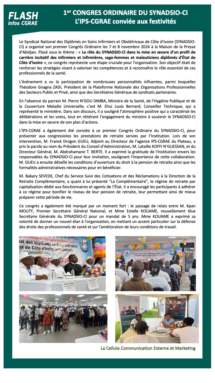 1er congrès ordinaire du synadsio-ci l’IPS-CGRAE conviée aux festivités