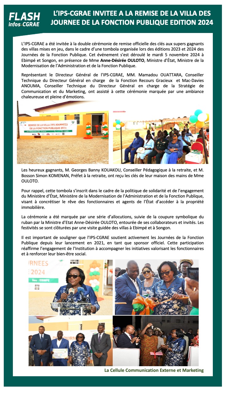 L’IPS-CGRAE invitée à la remise de la villa des journées de la fonction publique edition 2024