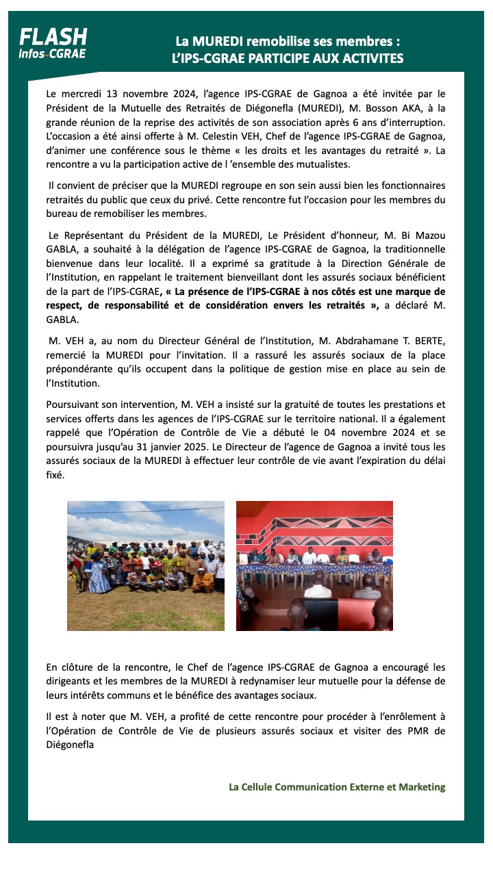 La MUREDI remobilise ses membres : L’IPS-CGRAE participe aux activités