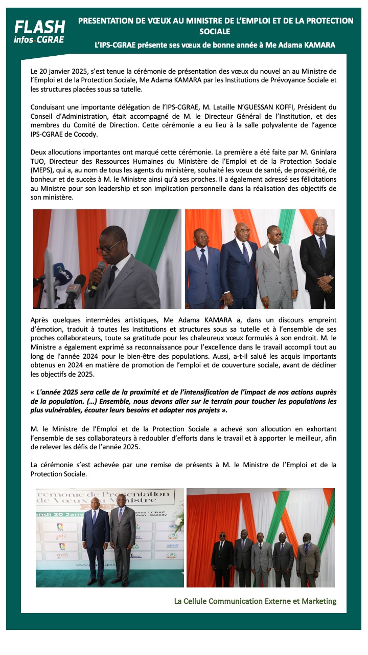 L’IPS-CGRAE présente ses vœux de bonne année à Me Adama KAMARA