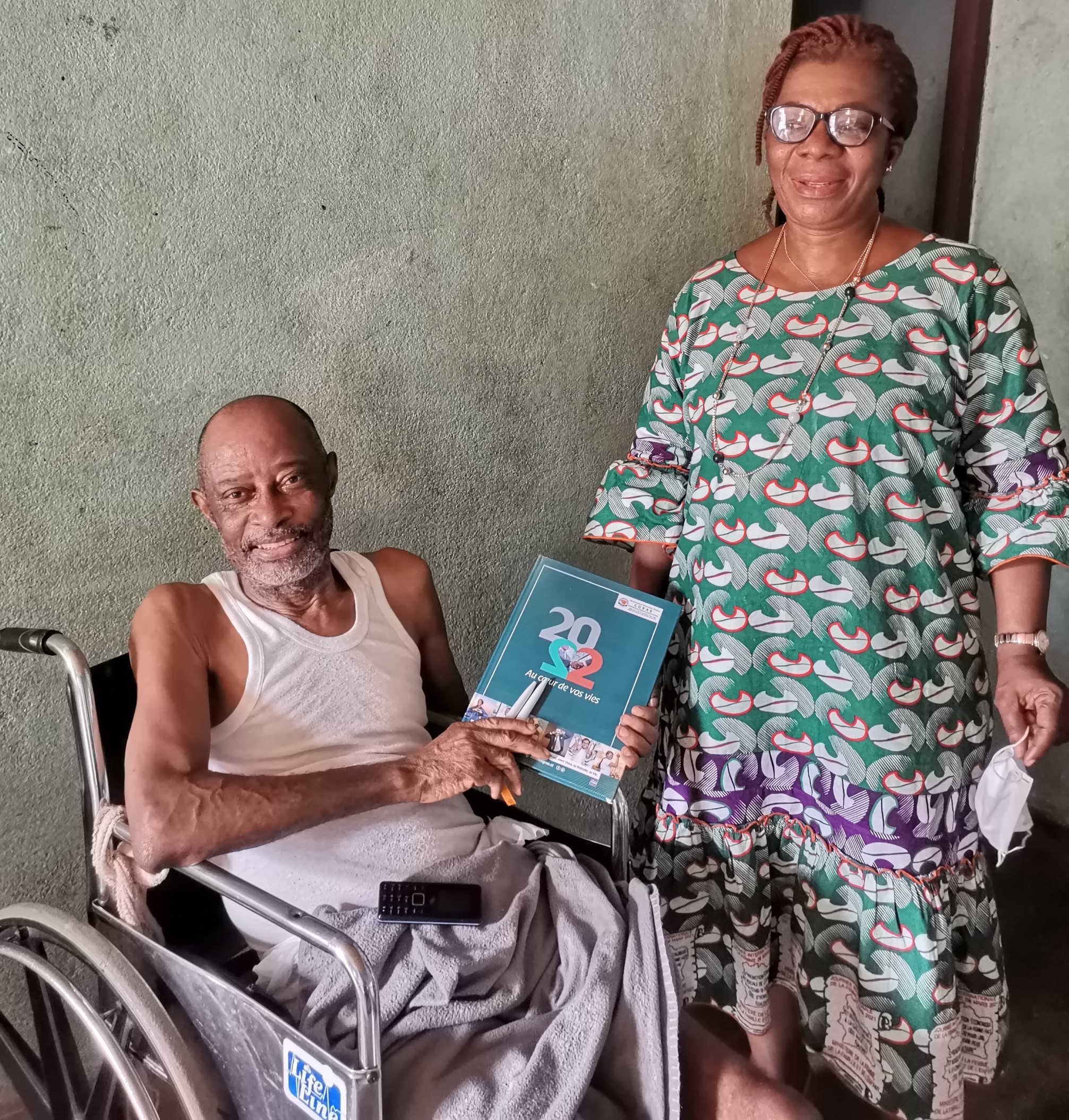 Dans le cadre des visites périodiques aux assurés sociaux à mobilité réduite de l’Institution, une équipe du Service des Actions Sanitaires et Sociales de l’IPS-CGRAE conduite par Mme ZUNON Dora Mireille Antonine, Chef dudit service, s’est rendue, le 23 février 2022, à Sikensi au domicile de M. GBAZIKE Alexandre, ex-Professeur de Lycée aujourd’hui à la retraite.
