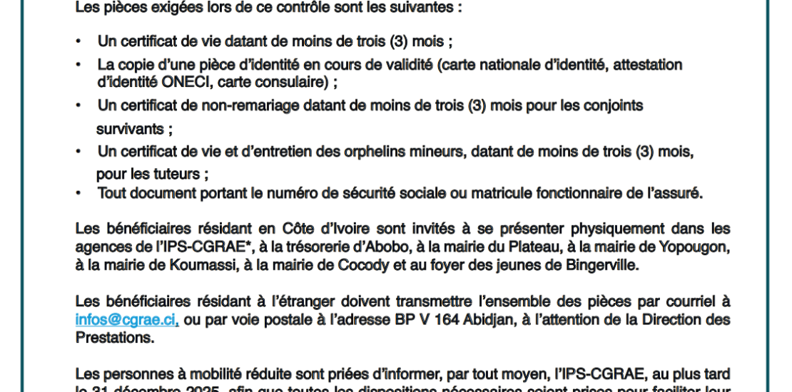 Communiqué relatif à l’opération de contrôle de vie 2025