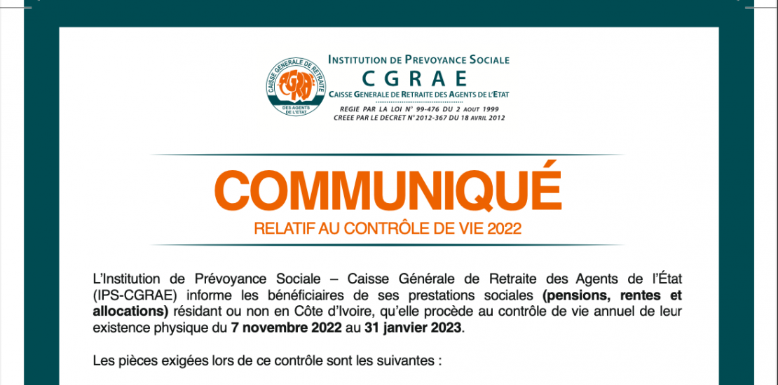 Communiqué relatif à l’opération de contrôle de vie 2023- novembre 2023